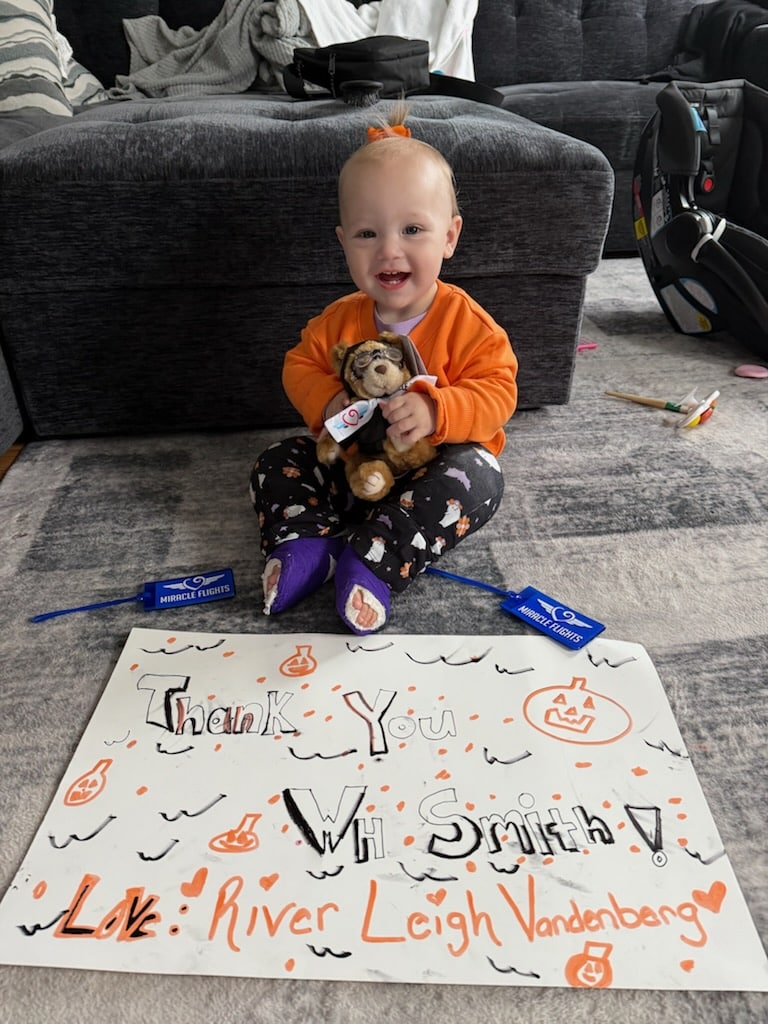 On October 5, just shy of her 11-month birthday, River boarded her very first Miracle Flight. Bright-eyed and full of wonder, she traveled from Rochester, New York, to West Palm Beach, Florida, to see the specialist who could finally offer her real hope.